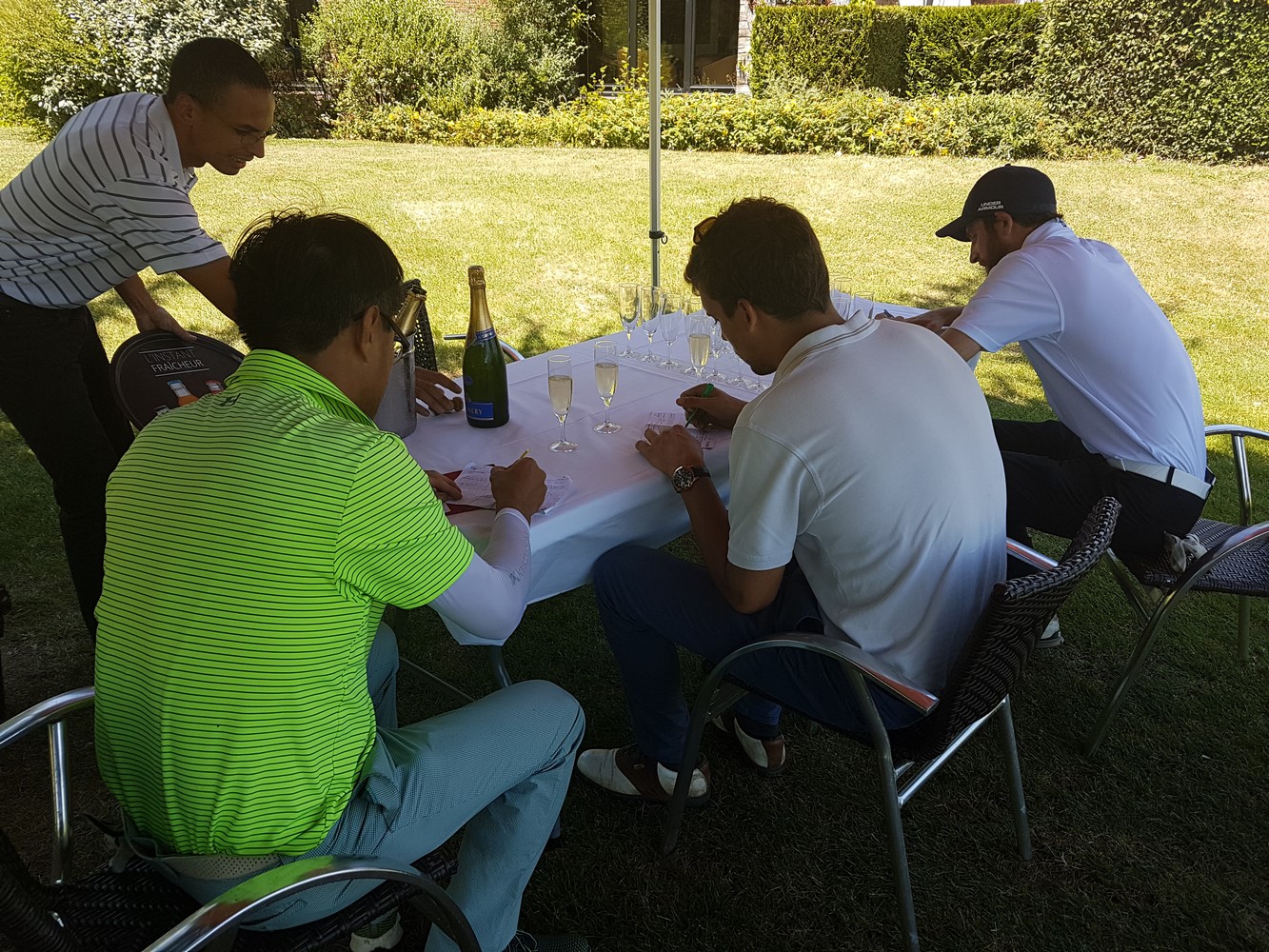 Les départs se sont échelonnés de 8h00 à 14h00; à leur retour, l’équipe ORPI s’entretenait avec les joueurs autour d’une coupe de champagne.